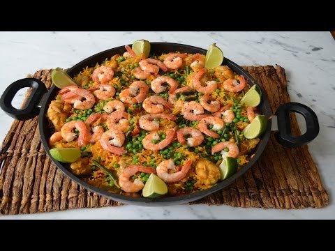 غذای اسپانیایی (Paella) مواد لازم برای ۴ نفر: سینه مرغ ریز شده یا گوشت بالای کتف مرغ ۲۰۰ گرم میگو ۲۰۰ گرم لوبیا...
